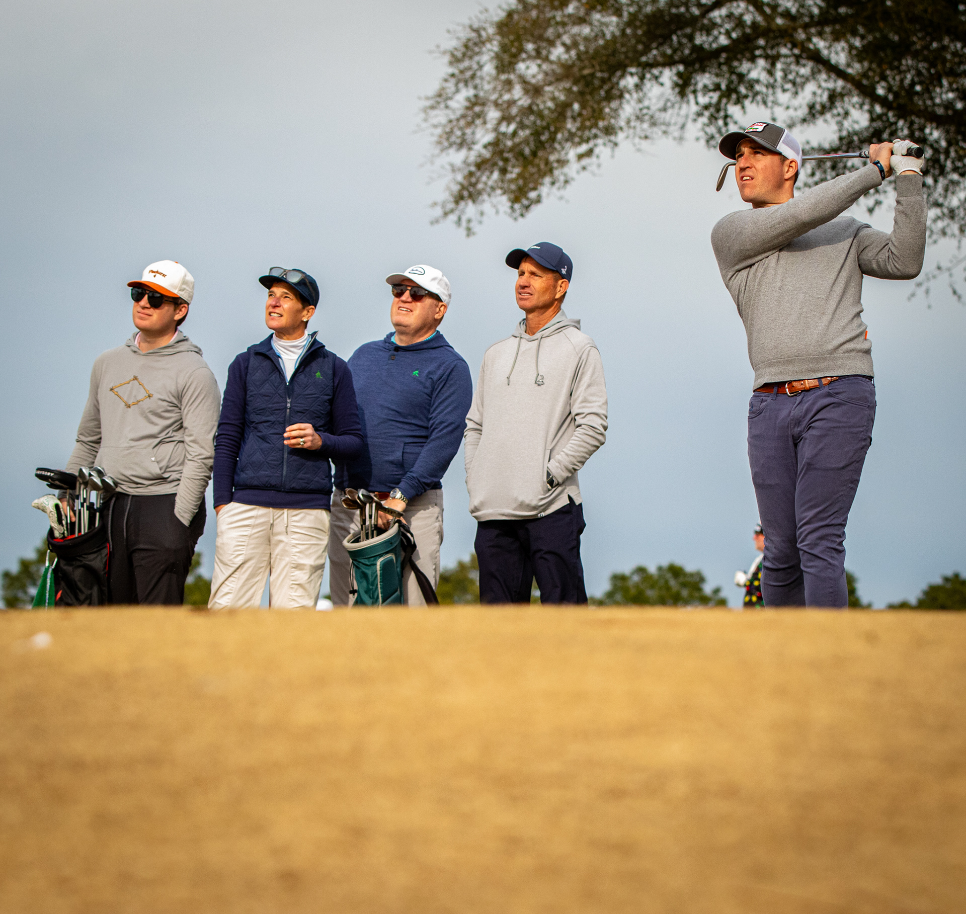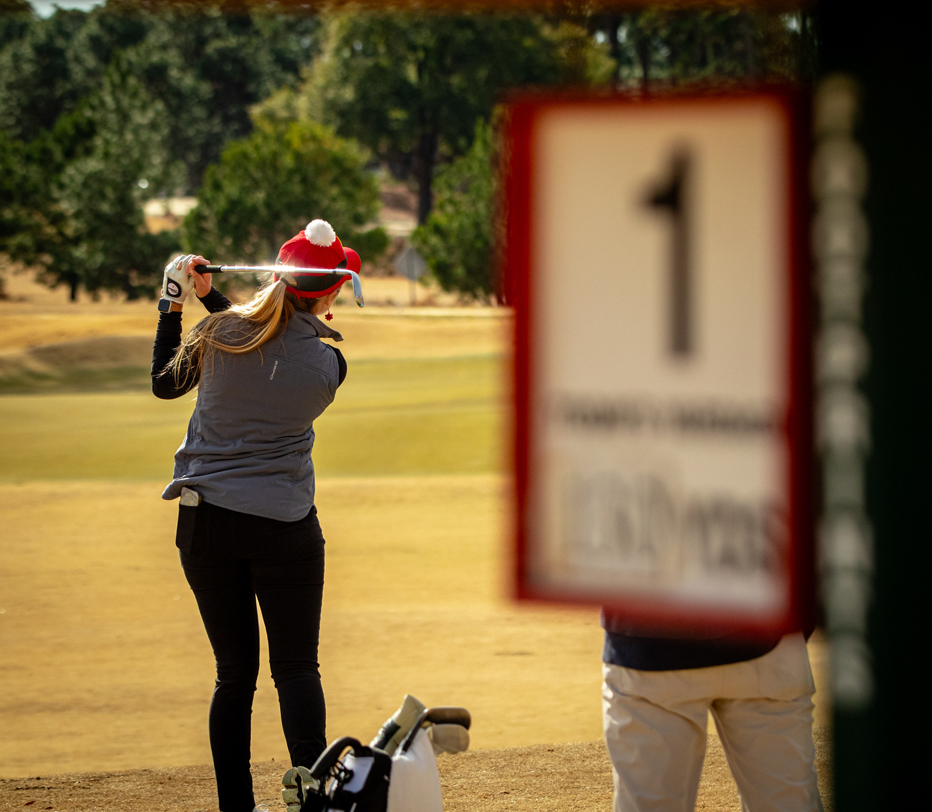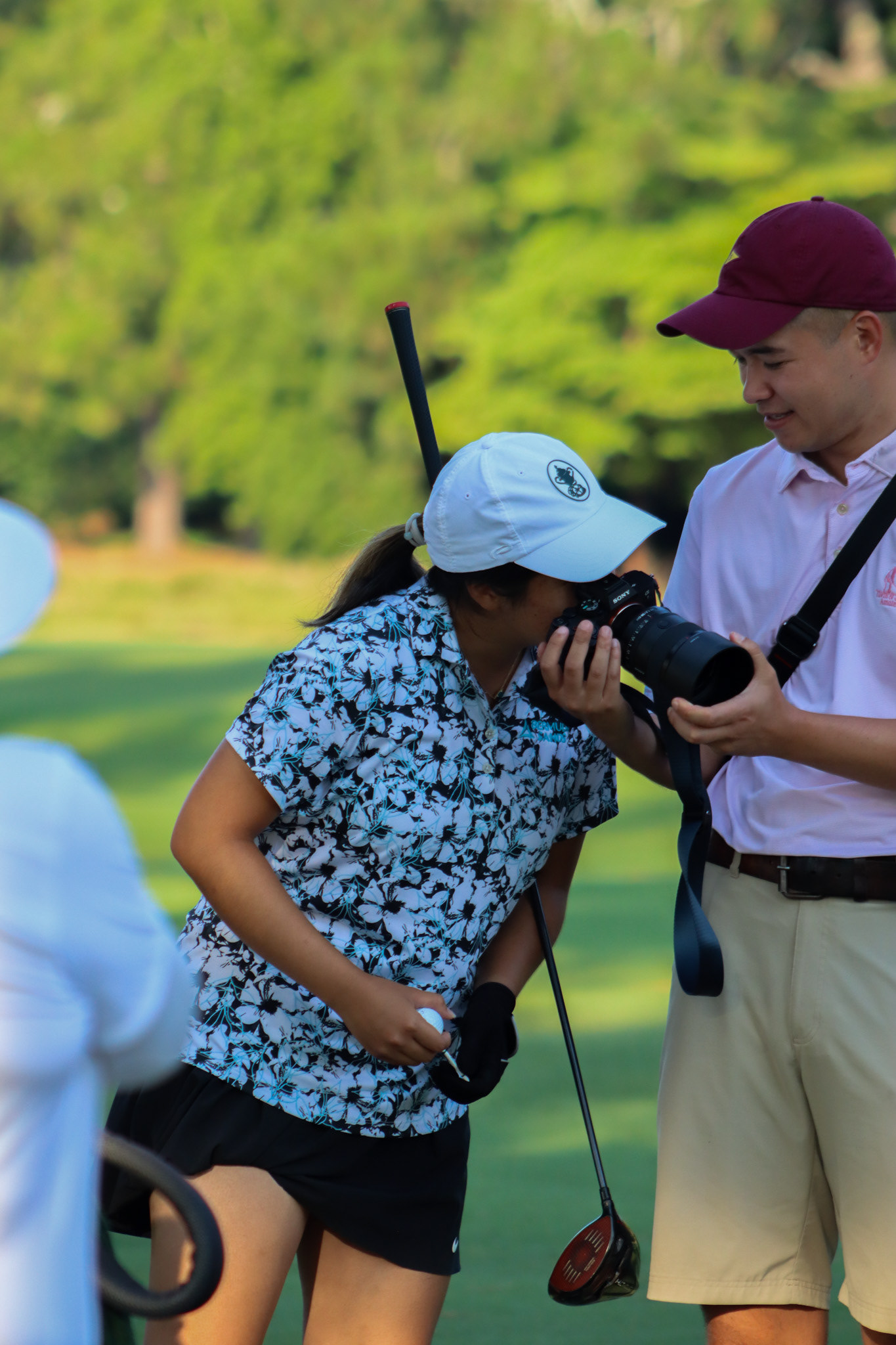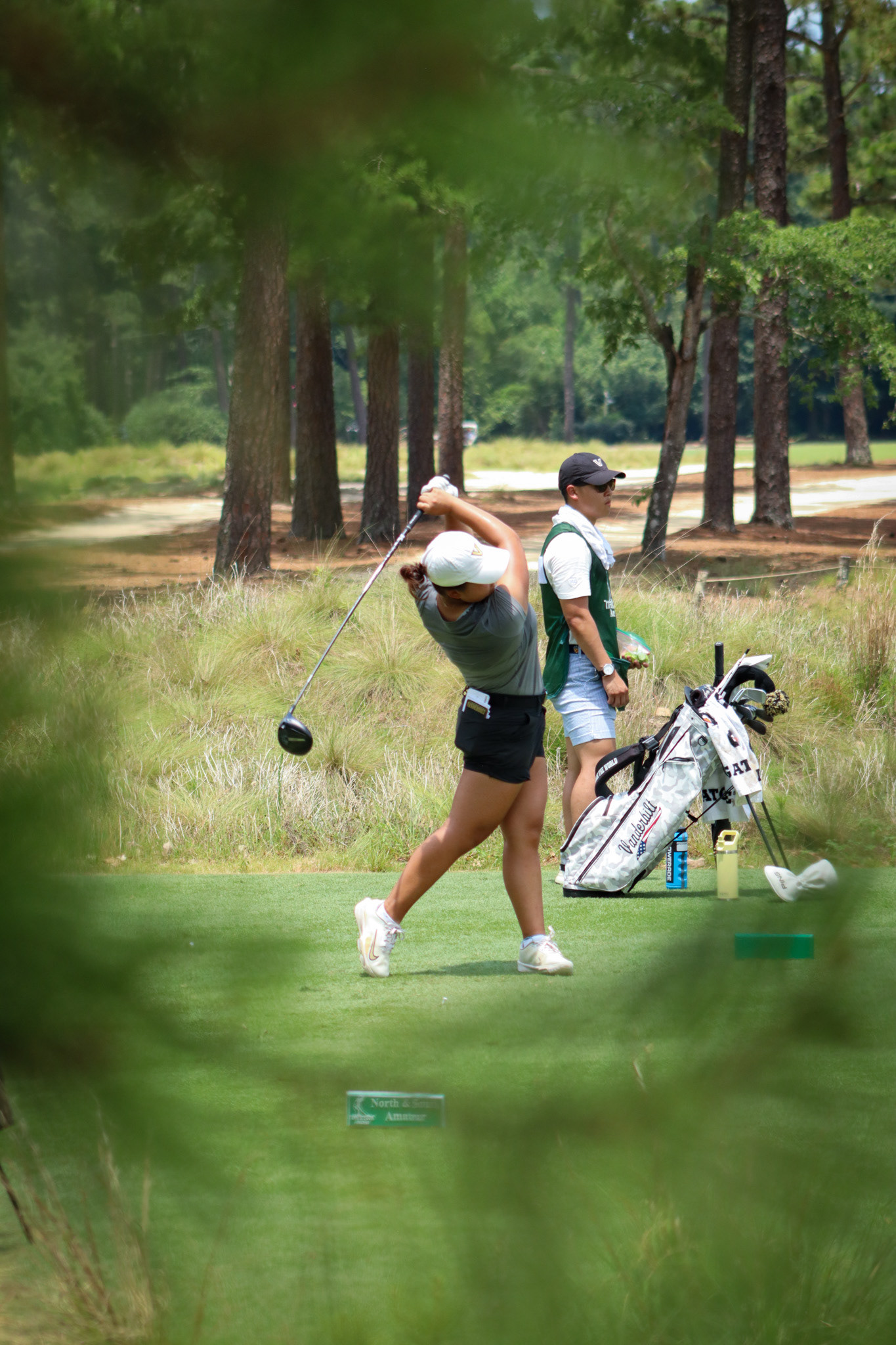 Tiger Woods watching his son tee off