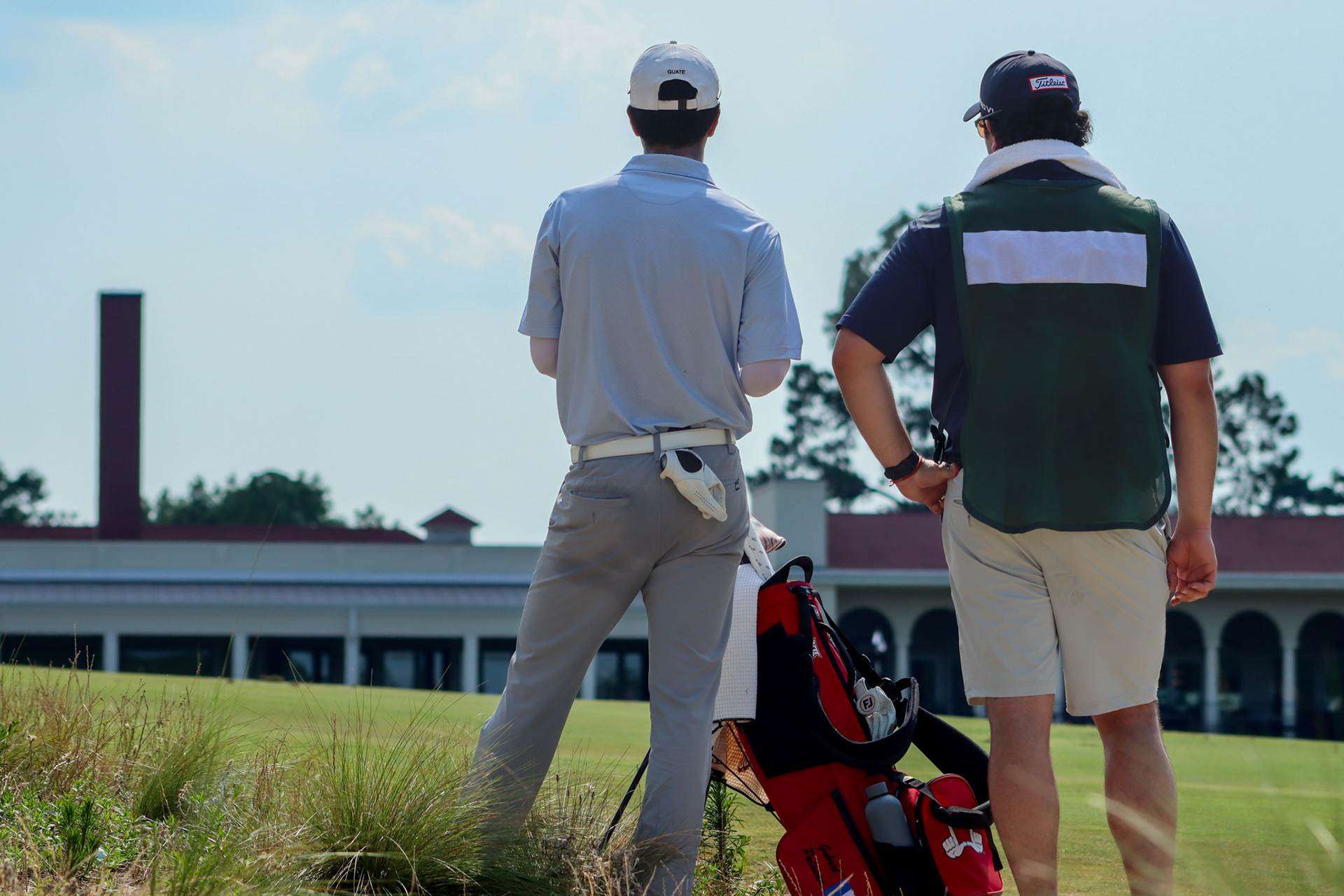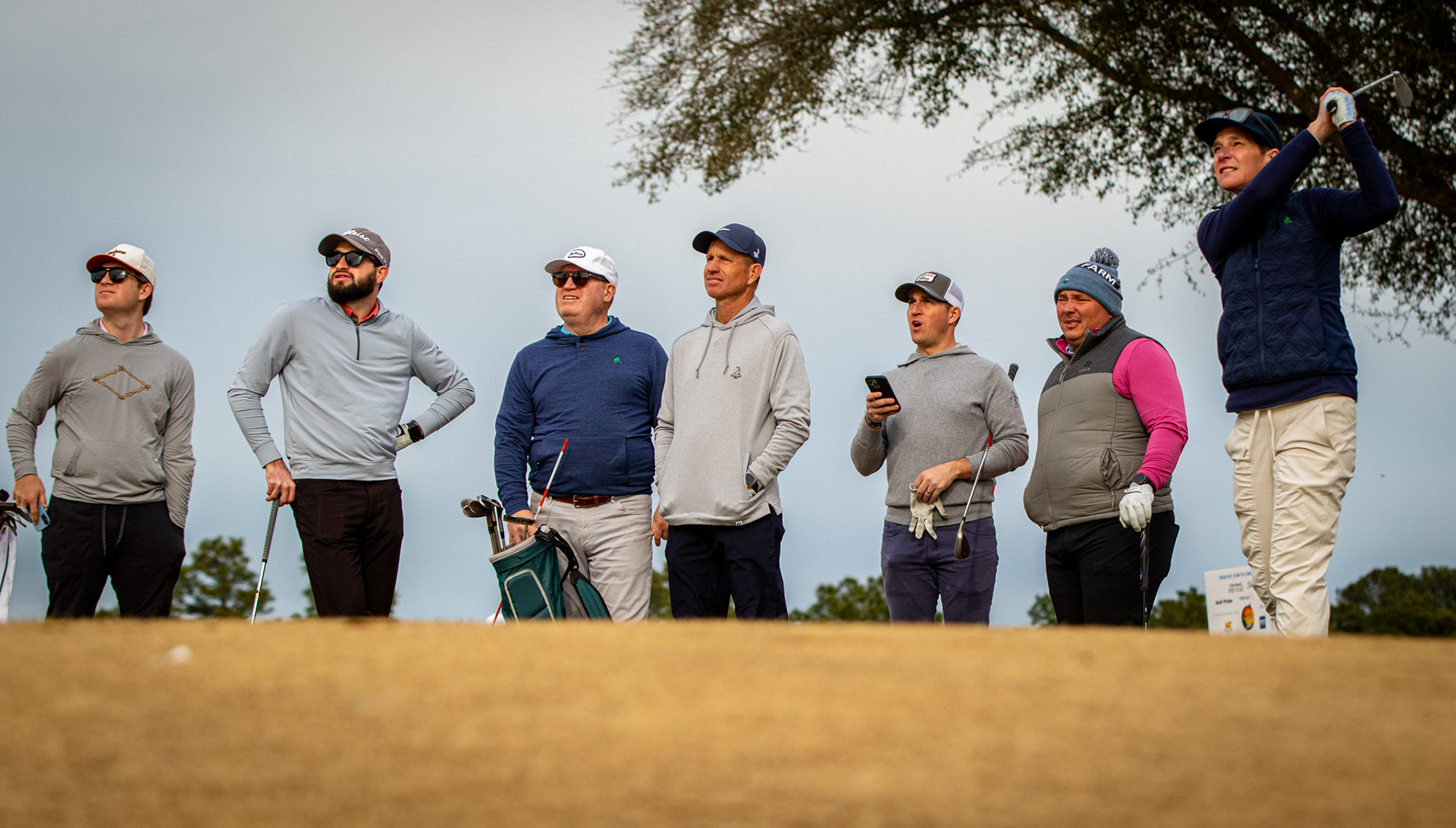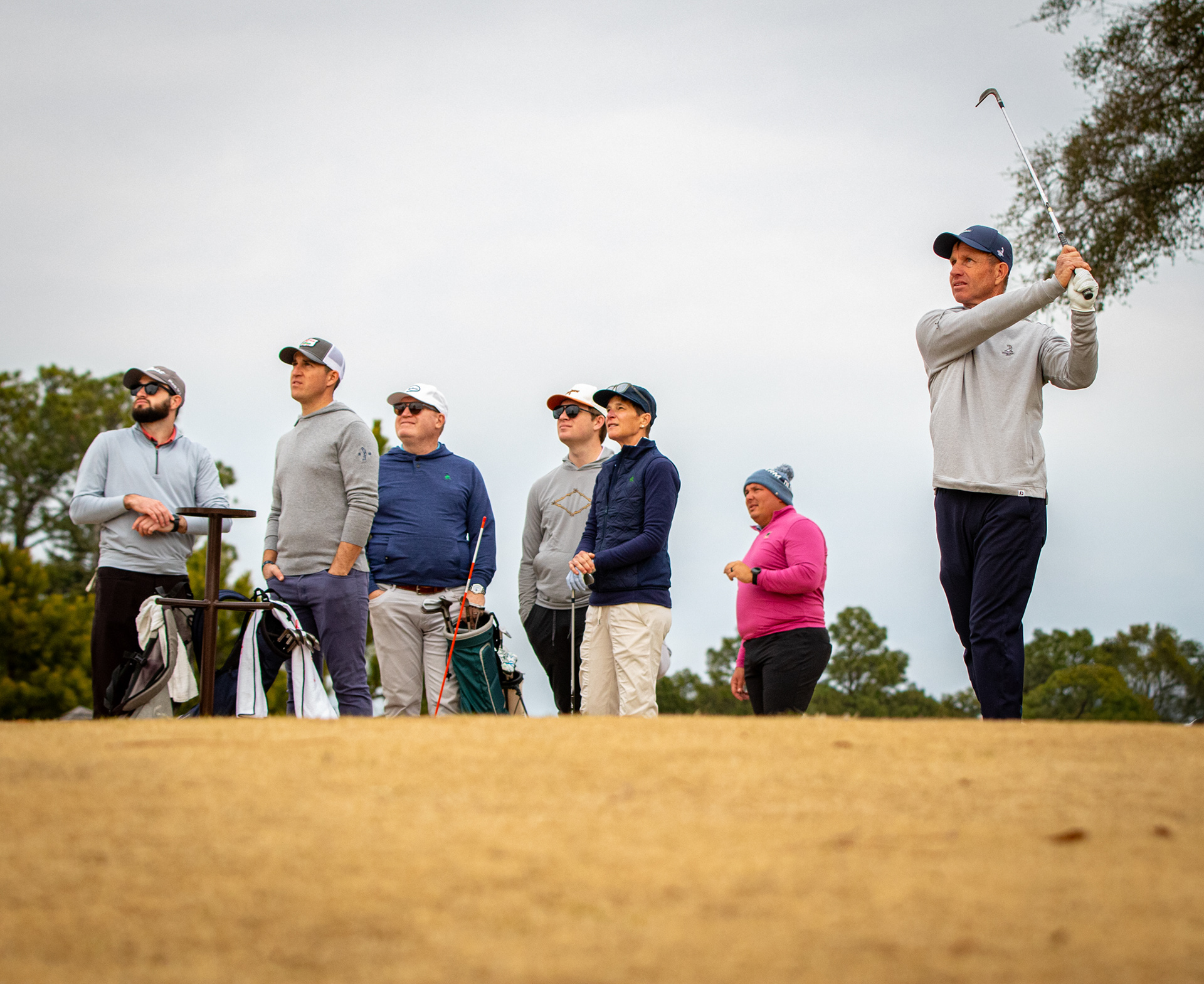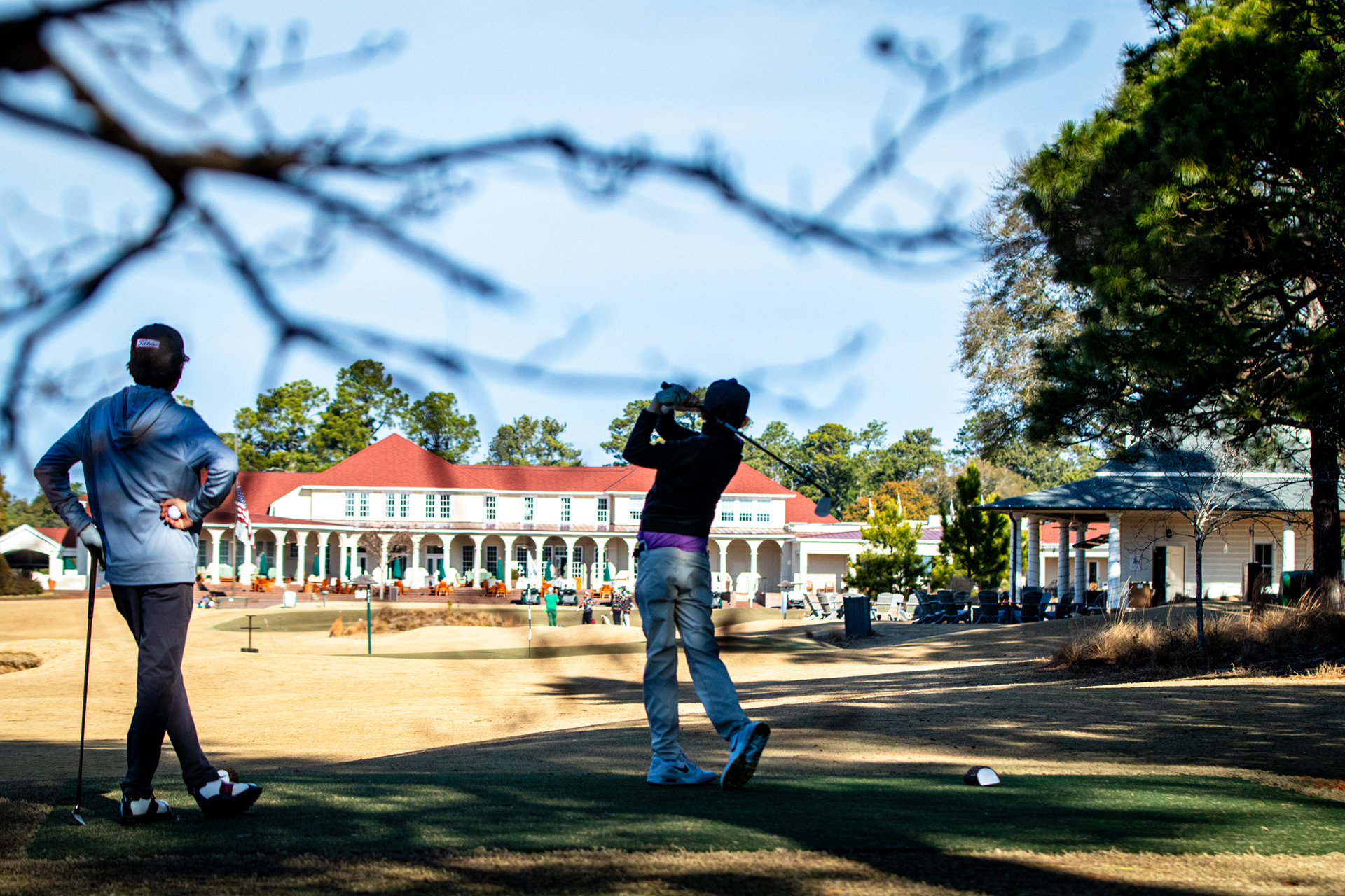 Tiger Woods watching his son tee off