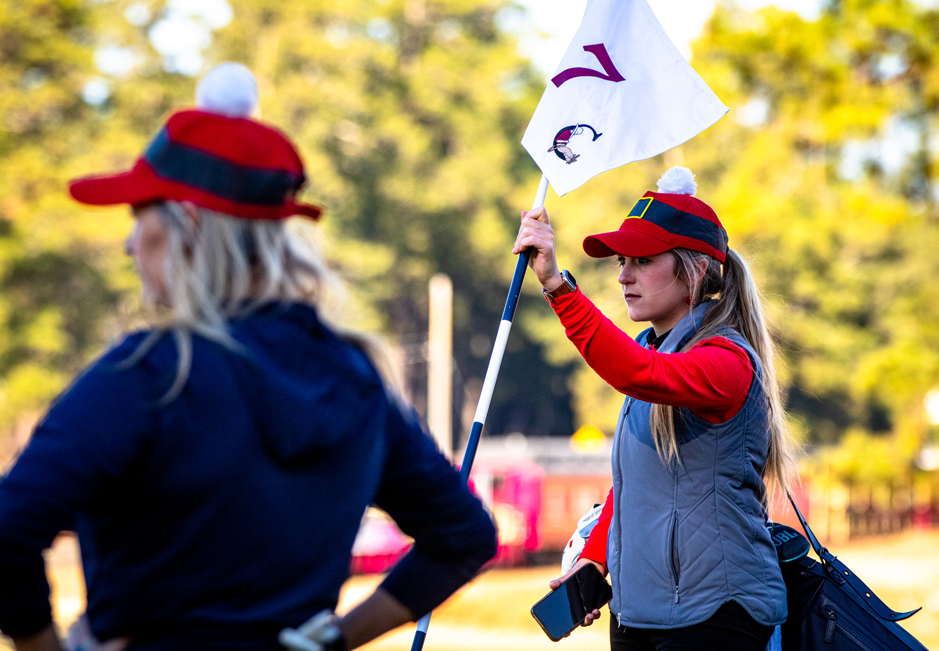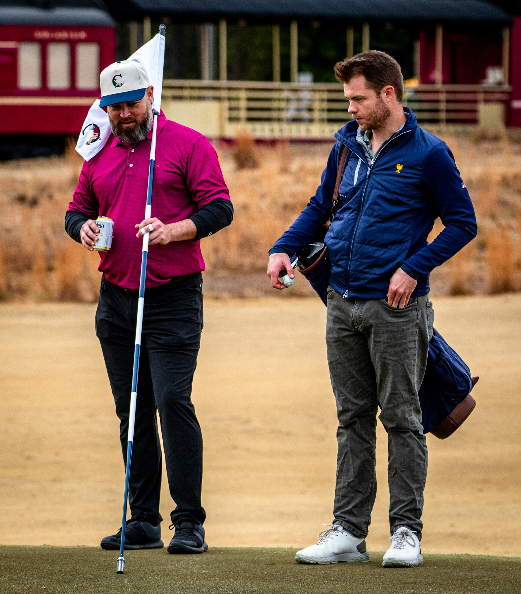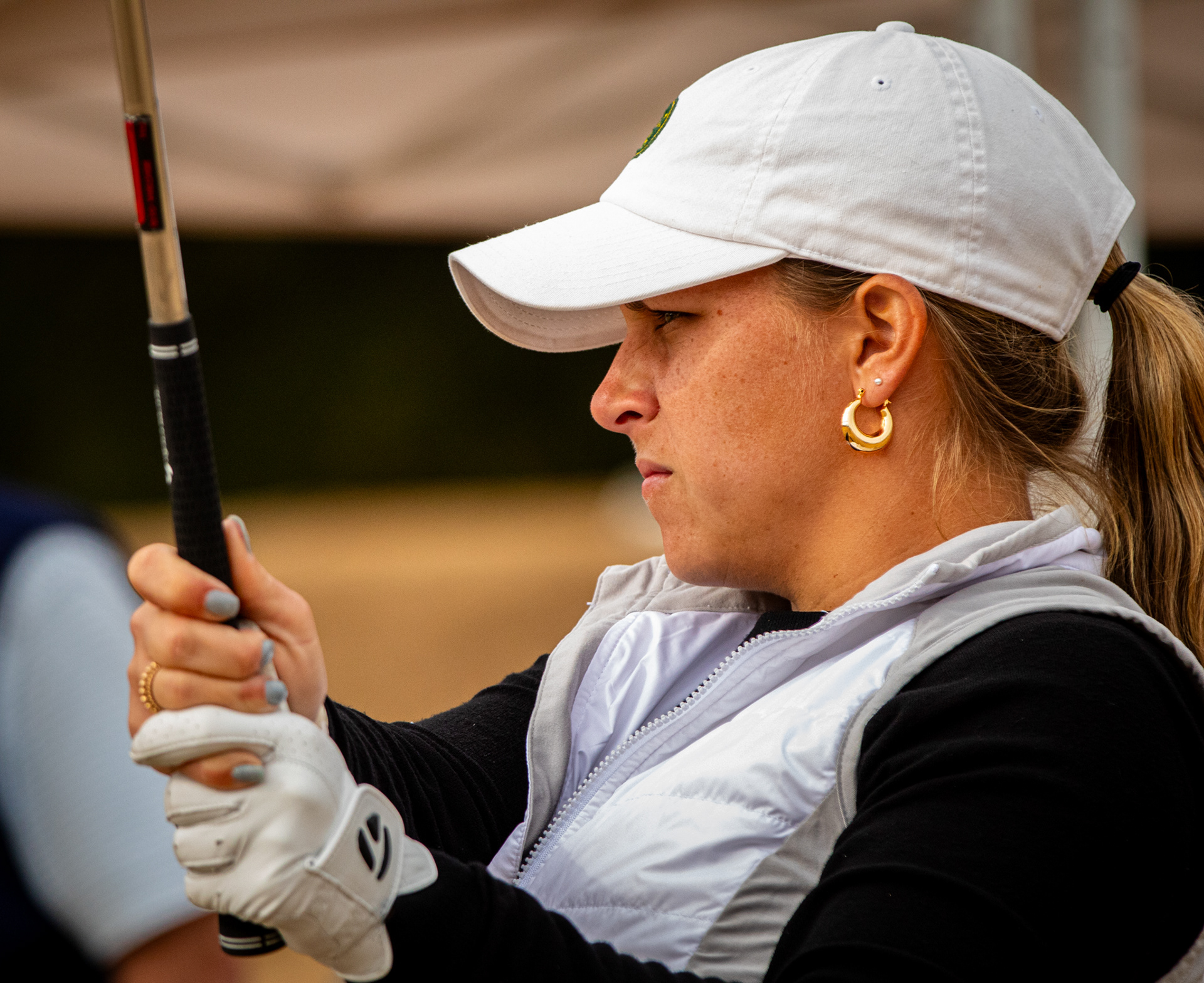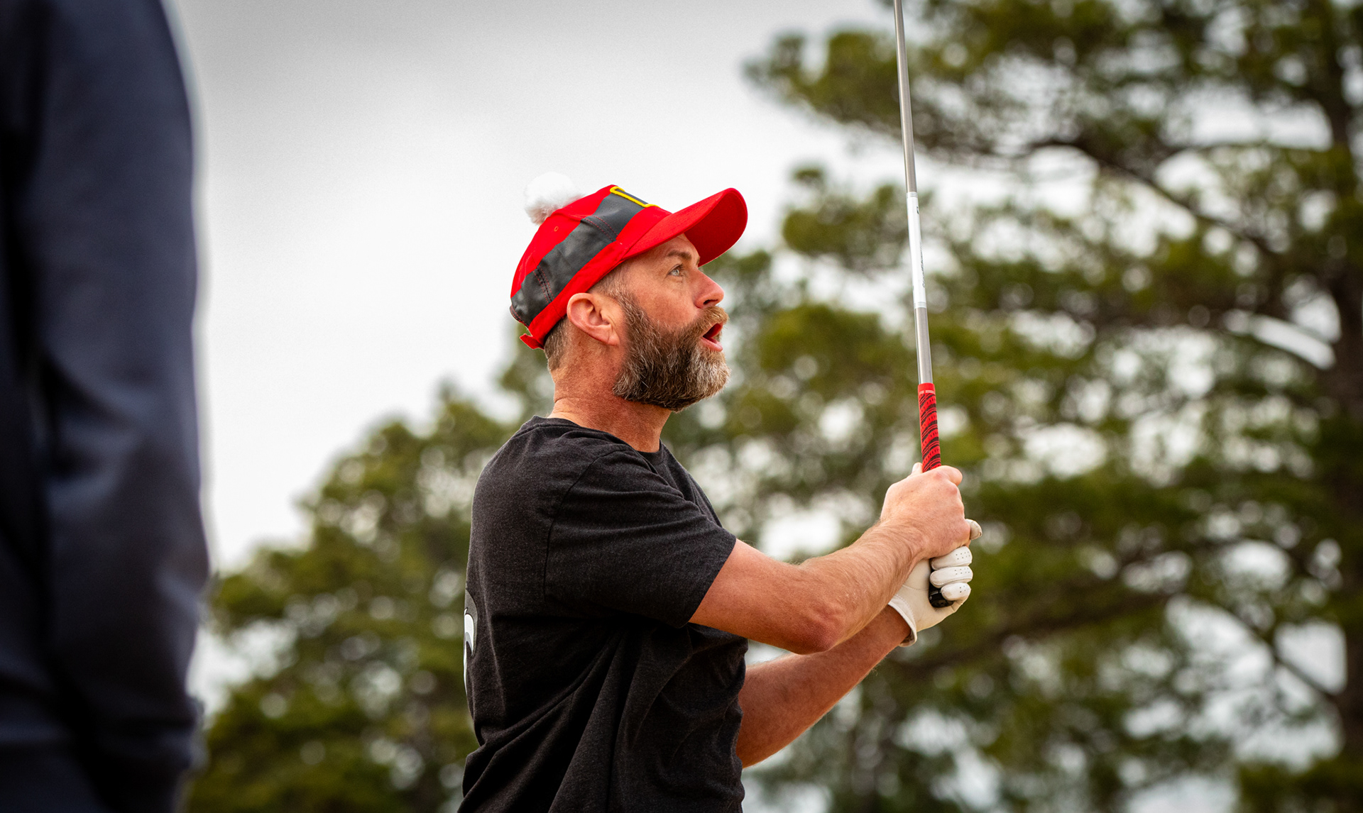 Tiger Woods watching his son tee off